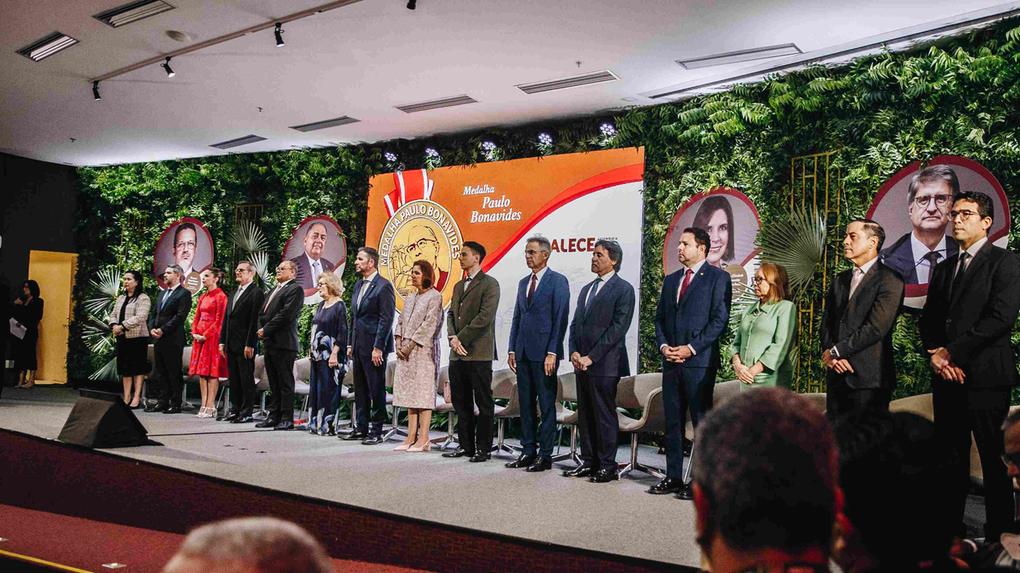 A Assembleia Legislativa do Ceará (Alece) realizou a entrega da primeira edição da Medalha Paulo Bonavides, destinada a reconhecer personalidades que se destacam no campo jurídico e na defesa da democracia. A solenidade contou com a presença de autoridades, parlamentares e representantes de instituições jurídicas na noite desta segunda, dia 11, em sessão solene que ocorreu no auditório João Frederico Ferreira Gomes, localizado no Edifício Deputado José Euclides Ferreira Gomes (Anexo II da Alece).