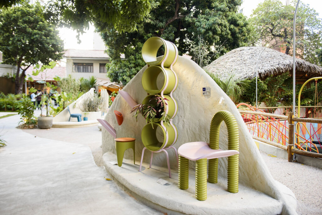 As criações do REgeneraLab estão sendo apresentadas na CASACOR Ceará 2025, compondo o paisagismo da praça Caminho das Águas, idealizada pelo arquiteto paisagista Bruno Ary. O espaço busca conectar elementos naturais e urbanos, destacando o papel do saneamento como fonte de inspiração estética, social e ambiental.