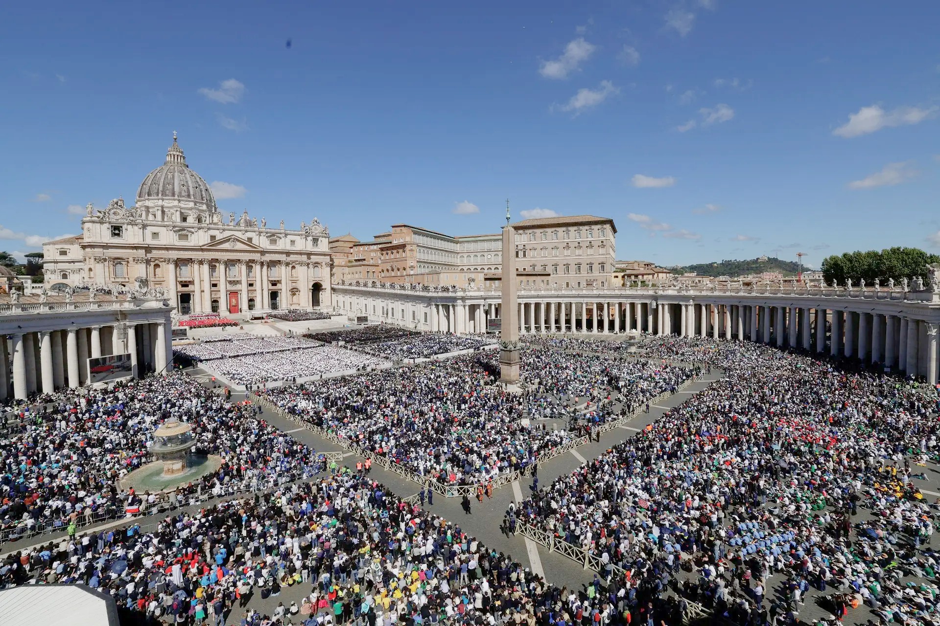 De acordo com a agência de notícias Reuters, a celebração foi concelebrada por 220 cardeais, 750 bispos e padres próximos ao altar, além de outros 4 mil padres espalhados pela praça. As autoridades limitaram o acesso de público e instalaram barreiras para conter os enlutados. Um corredor de segurança foi montado na divisa do Vaticano com a Praça Pio XII para a circulação das autoridades.