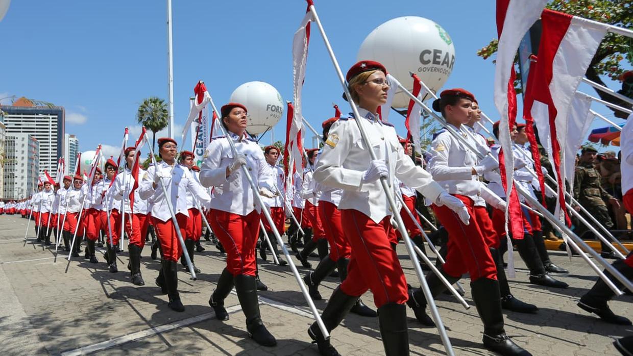 O desfile de 7 de setembro em Fortaleza reuniu mais de 10 mil participantes, entre militares, autoridades e estudantes. O evento ocorreu na Avenida Beira Mar e marcou o 203º aniversário da Independência do Brasil. O trajeto iniciou no Aterro da Praia de Iracema e seguiu até o Náutico Atlético Cearense.