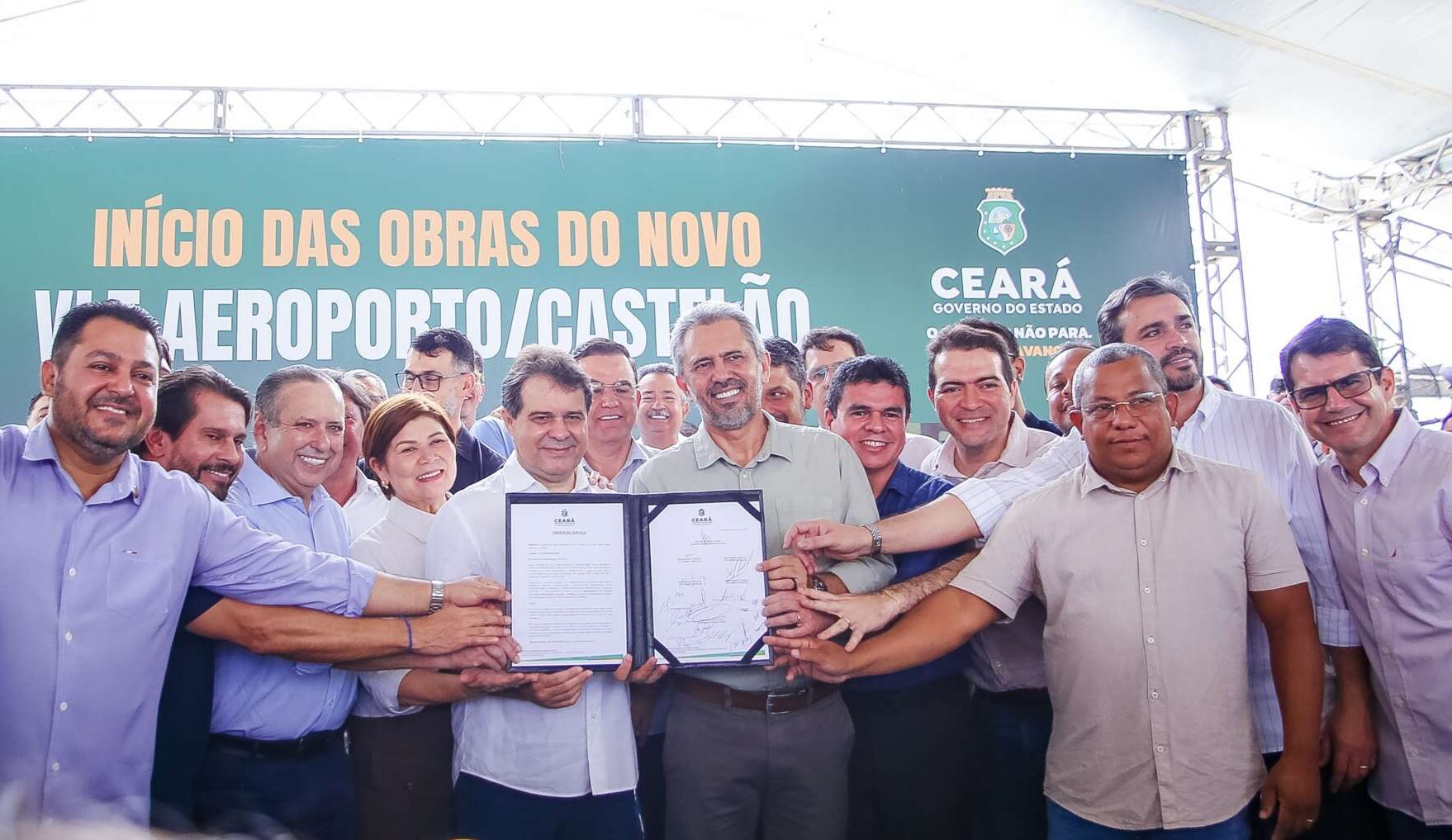 O governador Elmano de Freitas assinou, nesta quinta-feira, dia 24, a ordem de serviço para o início das obras da linha Aeroporto-Castelão do Veículo Leve sobre Trilhos (VLT). Com investimento de R$ 180 milhões, o novo trecho terá duas estações – no Condomínio Espiritual Uirapuru (CEU) e no Castelão – e capacidade para transportar até 35 mil pessoas por dia, reduzindo o tempo de deslocamento entre os dois pontos para apenas 12 minutos.