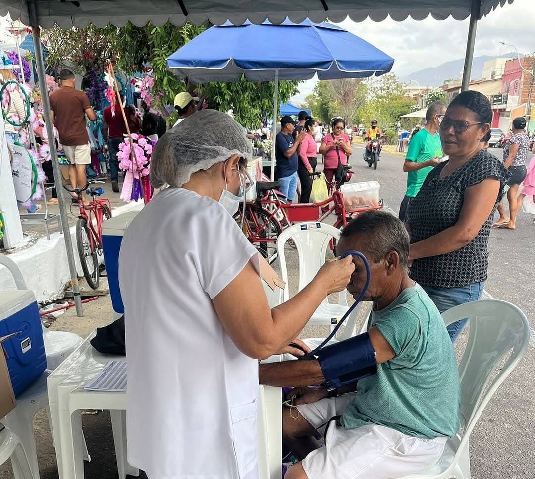 Durante a mobilização, profissionais de saúde ofereceram orientações, aferição de pressão arterial e outros atendimentos básicos, reforçando o cuidado com a saúde da comunidade.