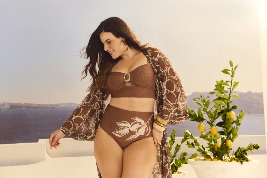 Os shapes surgem leves e bem construídos: vestidos esvoaçantes que acompanham o movimento do corpo, tops estruturados que equilibram delicadeza e presença, além de uma alfaiataria casual pensada para o verão. As modelagens valorizam a silhueta com naturalidade, criando um diálogo entre conforto, elegância e versatilidade. “Pensamos cada peça para que ela acolha o corpo com conforto, mas também entregue estilo e sofisticação em qualquer momento do dia”, afirma a diretora criativa.