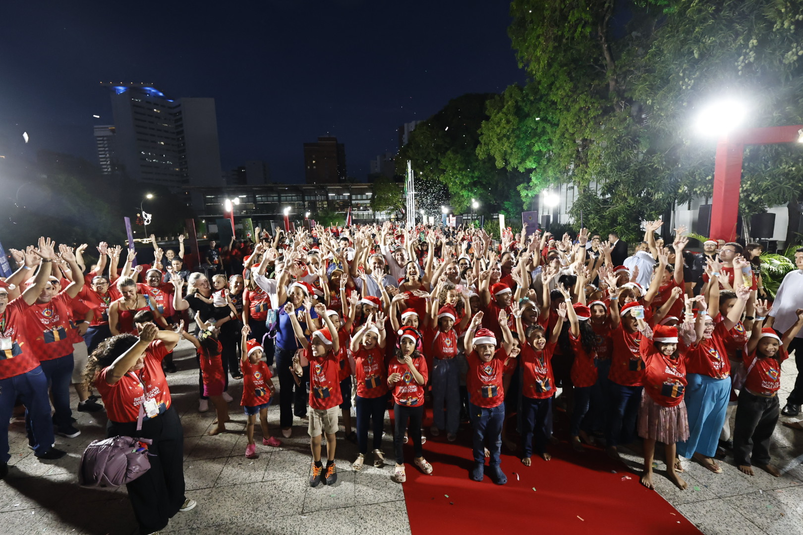 O Governo do Ceará realizou nesta sexta, dia 19, o Natal Ceará Sem Fome, no Palácio da Abolição, reunindo 500 crianças beneficiadas pelo programa e tuteladas pela Secretaria da Proteção Social. A ação integra a Campanha Natal Ceará Sem Fome, que arrecadou mais de 80 mil brinquedos neste ano. O governador Elmano de Freitas e a primeira-dama e presidente do Comitê Intersetorial de Governança do Programa Ceará Sem Fome, Lia de Freitas, participaram da recepção às crianças.