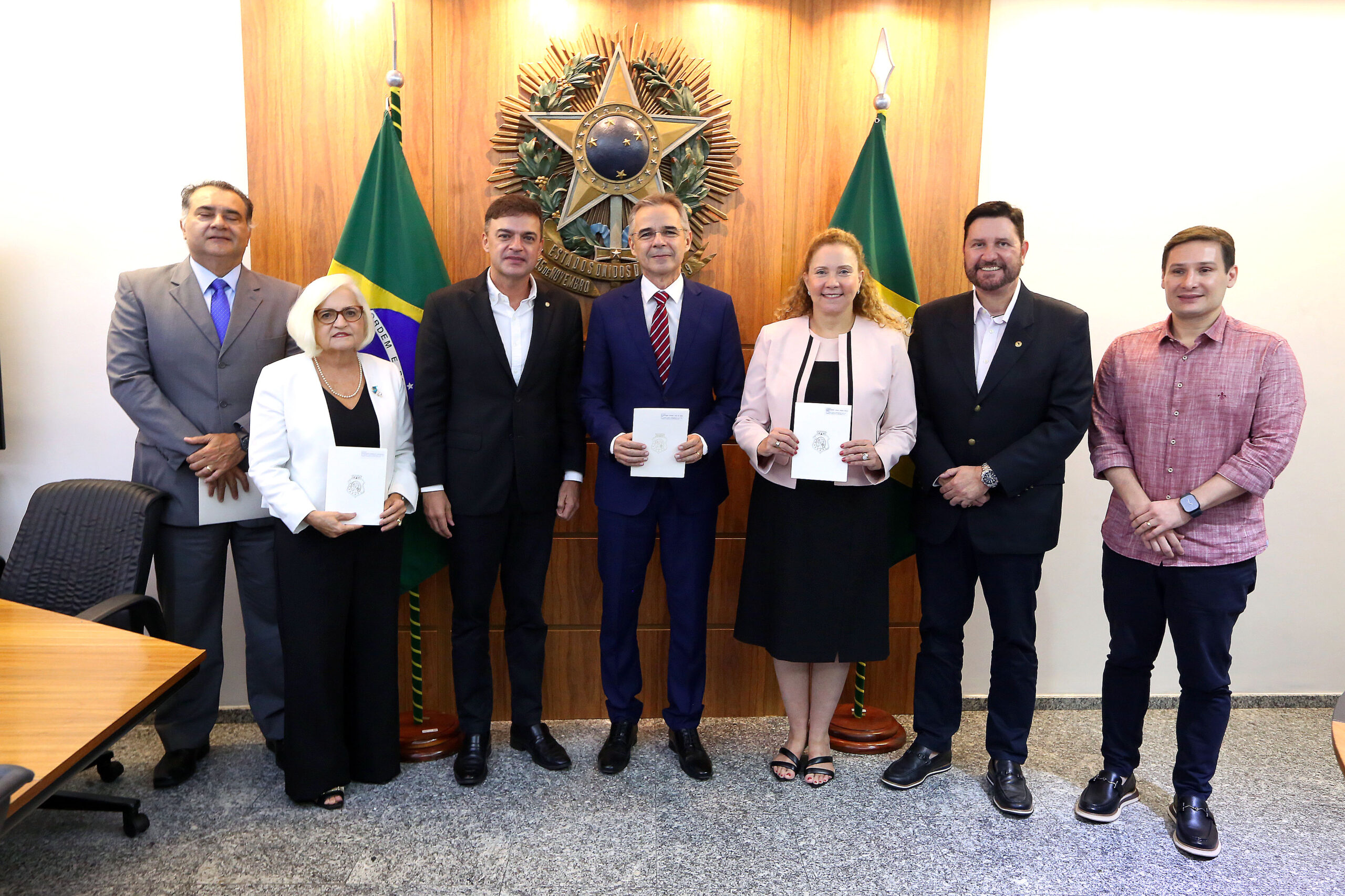 Na ocasião, o presidente Fernando Santana; o presidente eleito da Alece, deputado Romeu Aldigueri (PDT), e os deputados Marcos Sobreira (PDT) e João Jaime (Progressistas), recepcionaram os novos dirigentes eleitos para o biênio 2025-2027. Participaram do encontro o presidente eleito do TJCE, desembargador Heráclito Vieira de Sousa; o vice-presidente eleito, desembargador Francisco Mauro Ferreira; a corregedora-geral, desembargadora Marlúcia de Araújo; e a ouvidora do Poder Judiciário, desembargadora Andréa Mendes.