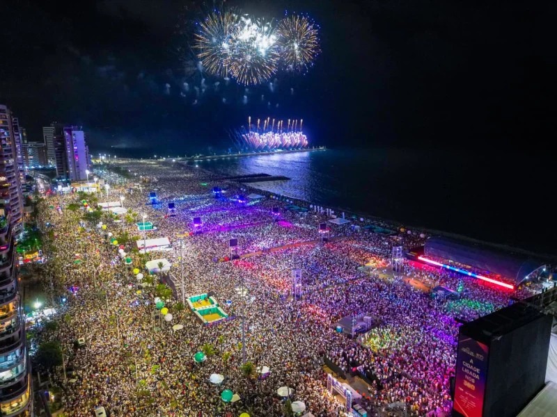 O Réveillon de Fortaleza 2026 – Ligado nos 300 reuniu cerca de 1,5 milhão de pessoas na Praia de Iracema para celebrar a chegada do novo ano. A festa teve uma queima de fogos de 10 minutos e integra o calendário de atividades pelos 300 anos da capital cearense, comemorados ao longo de 2026.