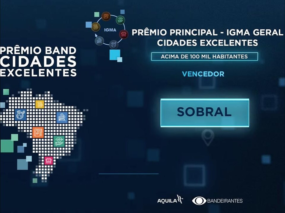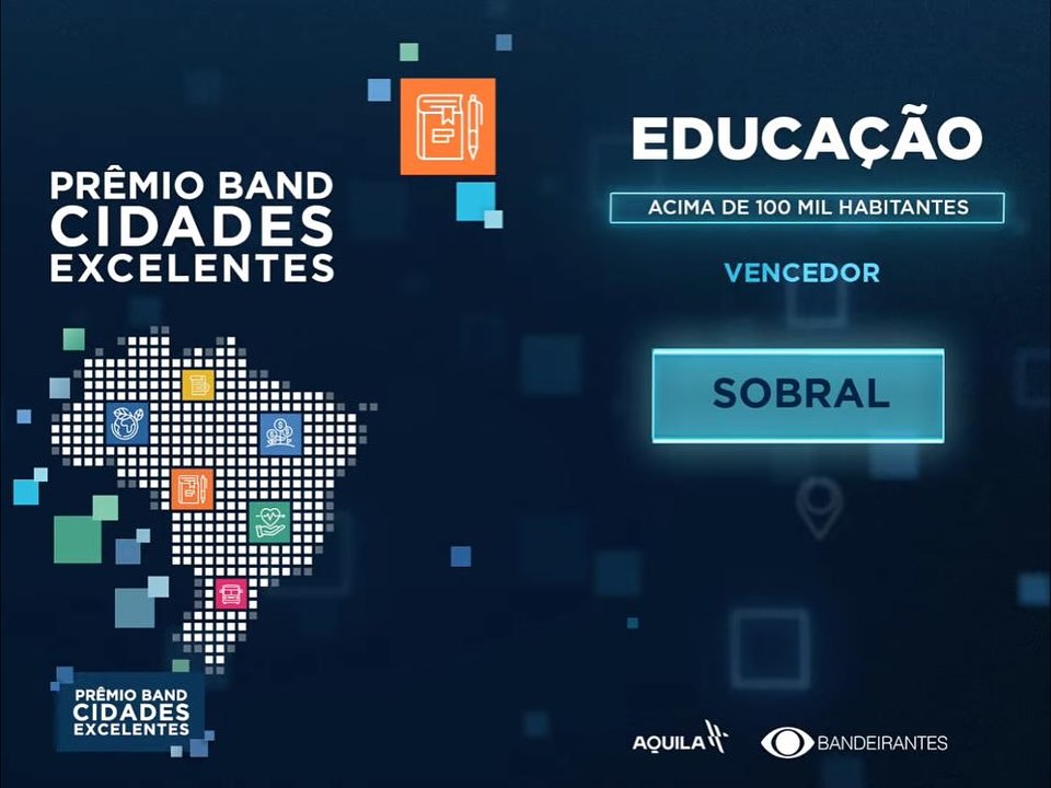 A cidade de Sobral foi premiada no Prêmio Band Cidades Excelentes 2025, evento que reconhece as melhores gestões municipais do Ceará. O município foi vencedor entre as cidades acima de 100 mil habitantes e recebeu destaque nos eixos: